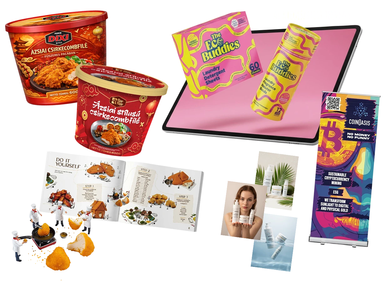 A Midjourney vagy a DALL-E lenyűgöző csomagolás-mockupokat generál — de a nyomda nem tud belőlük dolgozni. A nyomdai csomagoláshoz dieline, CMYK szín, kifutók és precíz szöveg-elhelyezés kell. Ehhez már viszont grafikus kell.